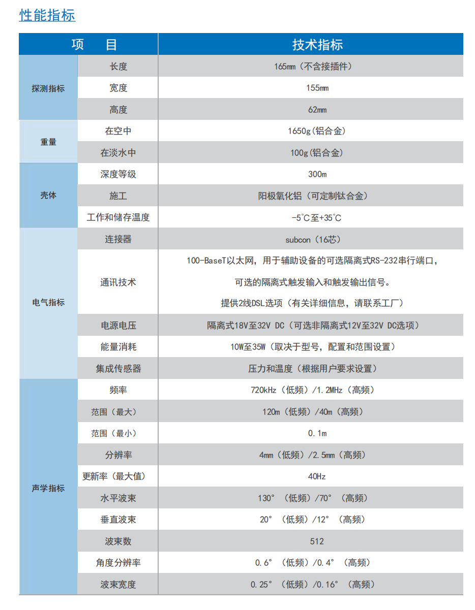 多波束前视成像声呐(YQ-FLS750d)是新一代的小巧图像声呐,在水下具有广泛的应用。由于它体积小,是应用在微小平台 方面的理想设备,同时它拥有坚固的外形结构,也是大型的工作级水下机器人和测量水下地形构造等应用的最佳选择。